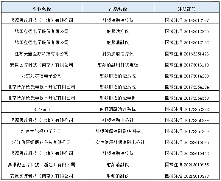 目前國(guó)內(nèi)已獲批的腫瘤射頻產(chǎn)品(來(lái)源:NMPA)