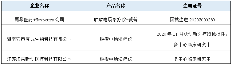 目前國(guó)內(nèi)的腫瘤電場(chǎng)產(chǎn)品(來(lái)源:NMPA)