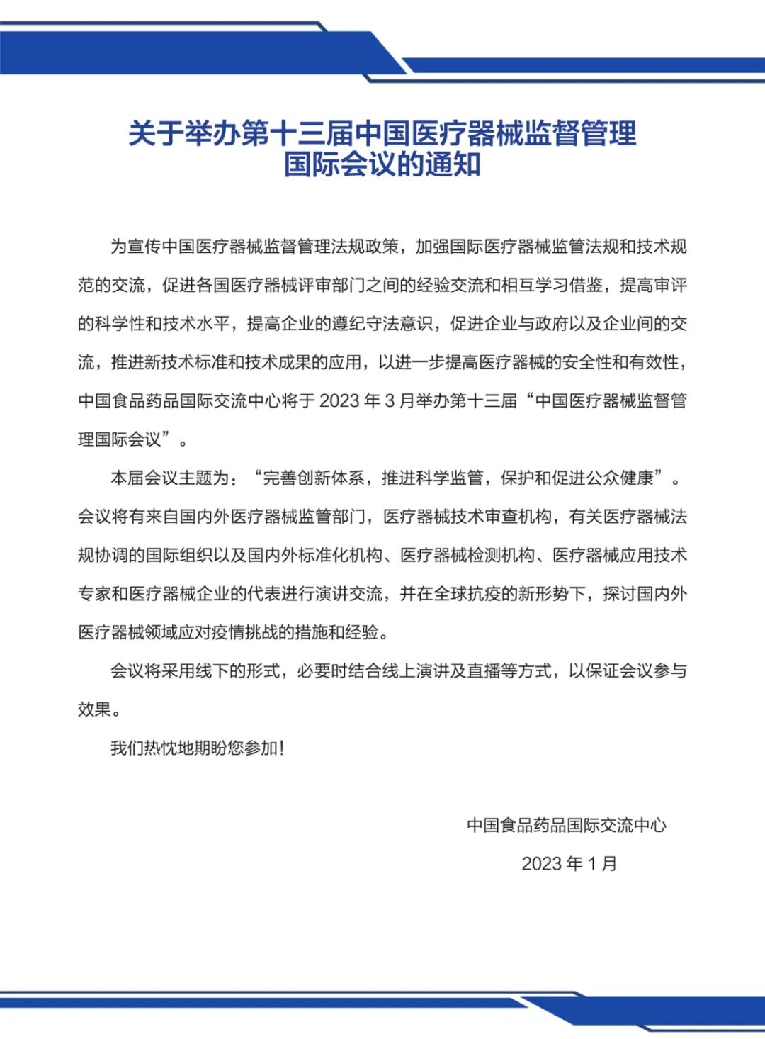 2023年3月1日-4日,第十三屆中國(guó)醫(yī)療器械監(jiān)督管理國(guó)際會(huì)議(CIMDR)將于福建省福州市海峽國(guó)際會(huì)展中心隆重舉行,奧泰康作為參展商和演講嘉賓參加會(huì)議,誠(chéng)摯邀請(qǐng)各位醫(yī)療同仁蒞臨展位。
