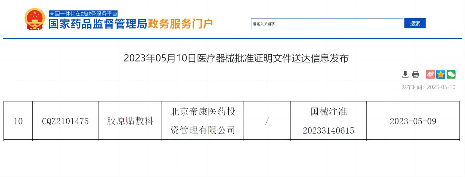 MA成果發(fā)布_2023年5月9日,奧泰康北京CDMO中心取得「首張」國(guó)家藥監(jiān)局批準(zhǔn)的三類醫(yī)療器械注冊(cè)證2023年5月9日,奧泰康北京CDMO中心取得「首張」國(guó)家藥監(jiān)局批準(zhǔn)的三類醫(yī)療器械注冊(cè)證(國(guó)械注準(zhǔn)20233140615),系全國(guó)首個(gè)以細(xì)胞外基質(zhì)來(lái)源的膠原蛋白為原料制備的三類膠原貼敷料。此項(xiàng)目是北京CDMO中心基于“十三五”國(guó)家重點(diǎn)研發(fā)計(jì)劃項(xiàng)目,在MAH制度下,與湖北恒安芙林藥業(yè)股份有限公司戰(zhàn)略合作完成涵蓋市場(chǎng)準(zhǔn)入全流程業(yè)務(wù)的醫(yī)美類項(xiàng)目,也是器械CRO/CDMO行業(yè)受托研發(fā)誕生的全國(guó)首個(gè)三類醫(yī)療器械注冊(cè)證,具有里程碑意義。
