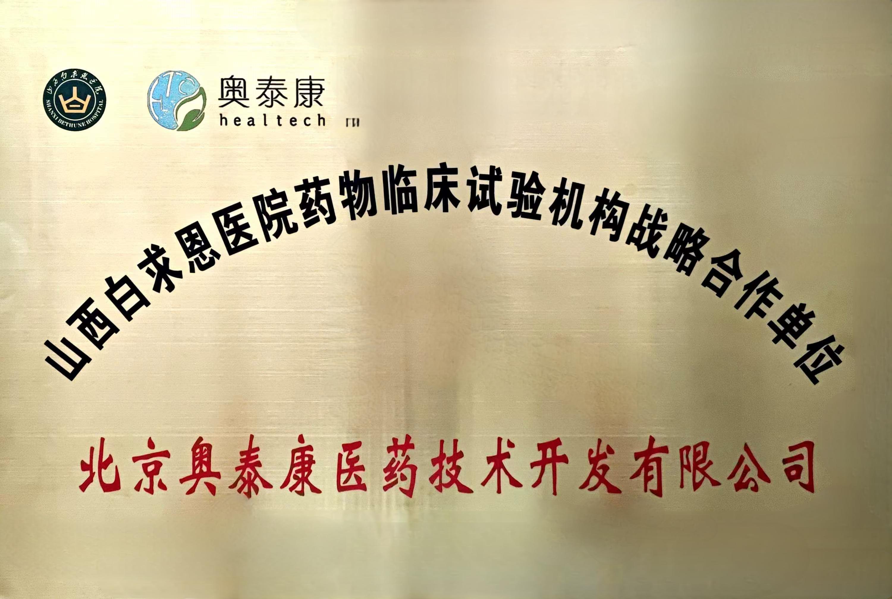 山西白求恩醫(yī)院在山西省委省政府的高位推動下,作為國家區(qū)域醫(yī)療中心進行重點建設(shè)。其藥物臨床試驗機構(gòu)是山西省藥理學(xué)會藥物臨床試驗主委單位,承擔(dān)著提高山西省藥物臨床試驗整體研究水平、保障省內(nèi)藥物臨床試驗項目質(zhì)量管理規(guī)范化的重務(wù)。此次奧泰康獲得山西白求恩醫(yī)院“戰(zhàn)略合作單位”的授牌,標(biāo)志著雙方的合作關(guān)系再上一個臺階,雙方將進一步展開多維度的深入合作,共同推動中國臨床研究事業(yè)的發(fā)展。