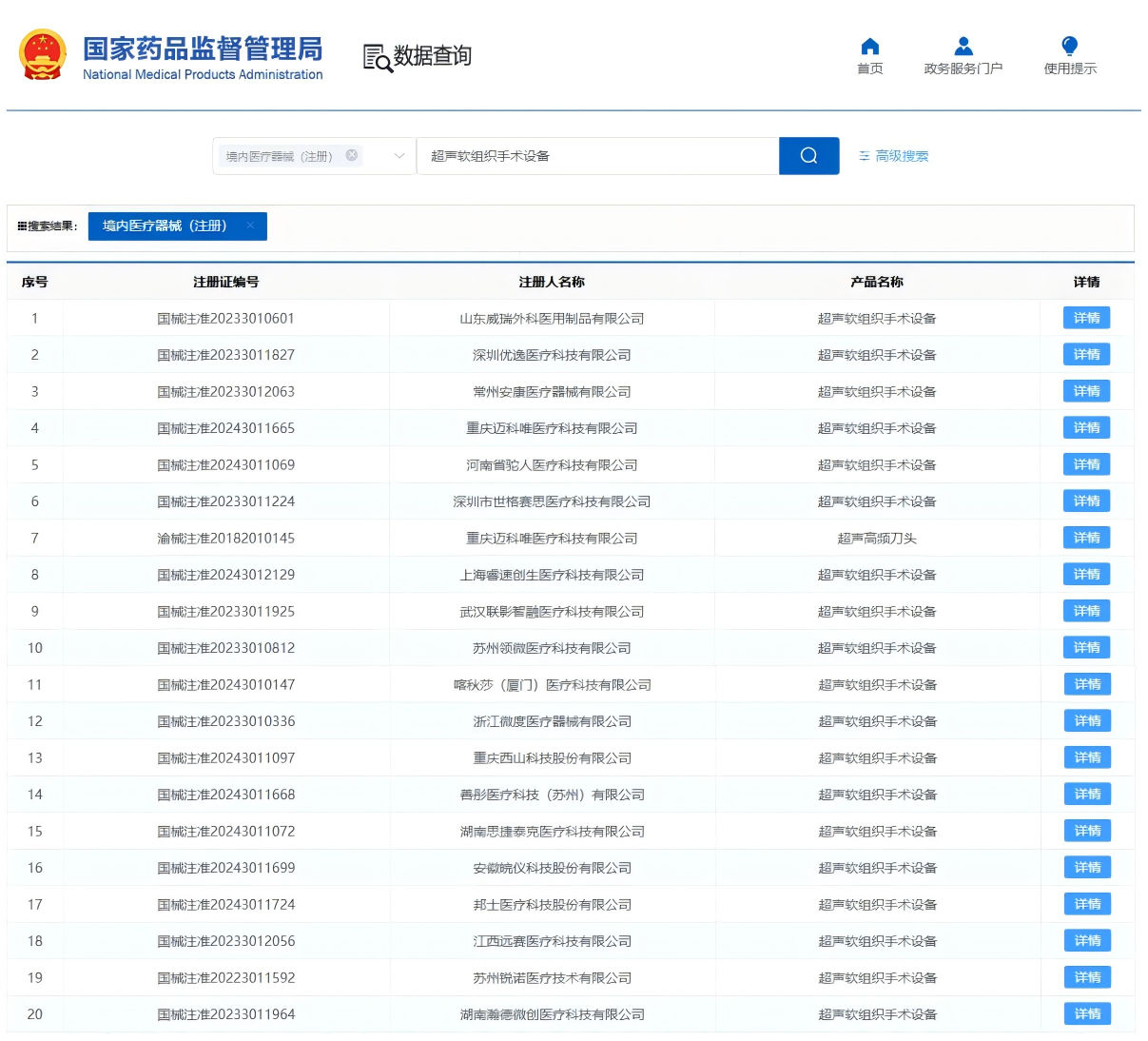 國內(nèi)已獲NMPA批準(zhǔn)的超聲刀產(chǎn)品