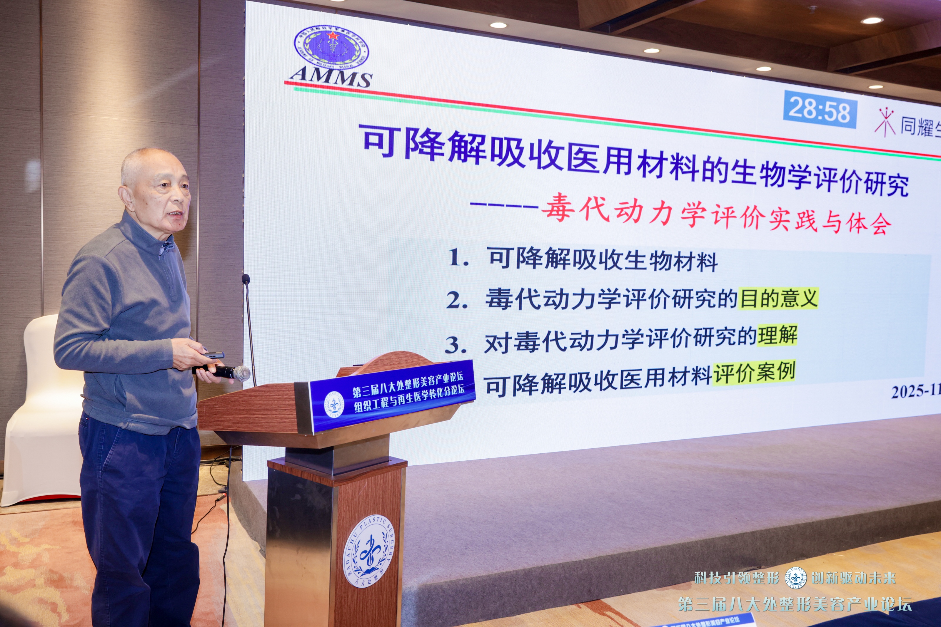 原軍事科學(xué)院軍事醫(yī)學(xué)研究院研究員、CMDE/CDE咨詢專家張振清教授介紹了《可降解吸收醫(yī)用材料的生物學(xué)評價研究——毒代動力學(xué)評價實踐與體會》。他強調(diào),毒代動力學(xué)評價對確保材料臨床安全性、理解毒性機制及支撐材料研發(fā)至關(guān)重要,包括暴露 - 毒性關(guān)系分析、安全范圍評估和降解產(chǎn)物行為分析。他還分享了放射性標記示蹤等關(guān)鍵技術(shù),并結(jié)合硬腦膜封合膠、止血紗布等案例,闡釋了毒代動力學(xué)在材料生物學(xué)評價中的實踐應(yīng)用與科學(xué)價值。